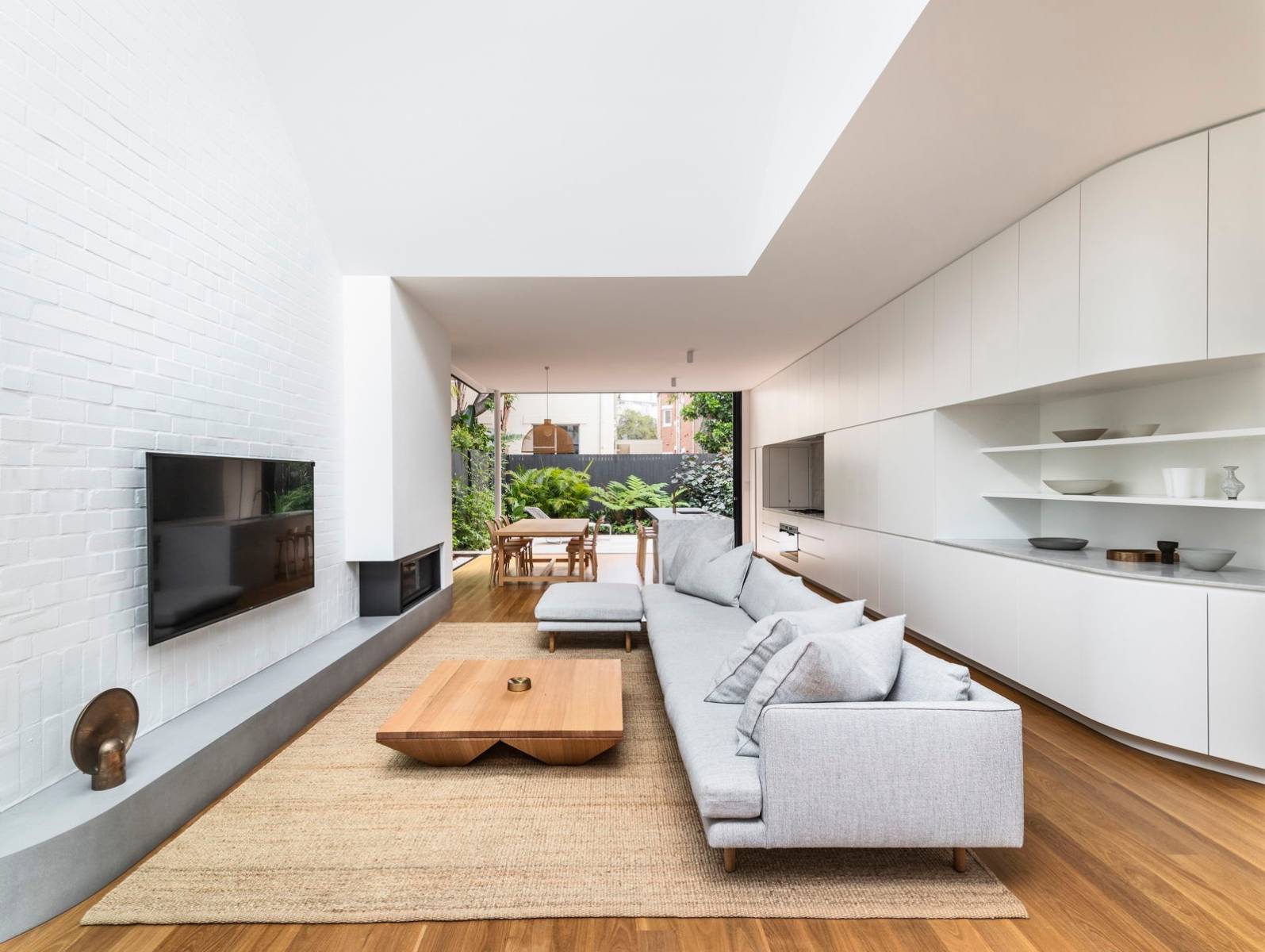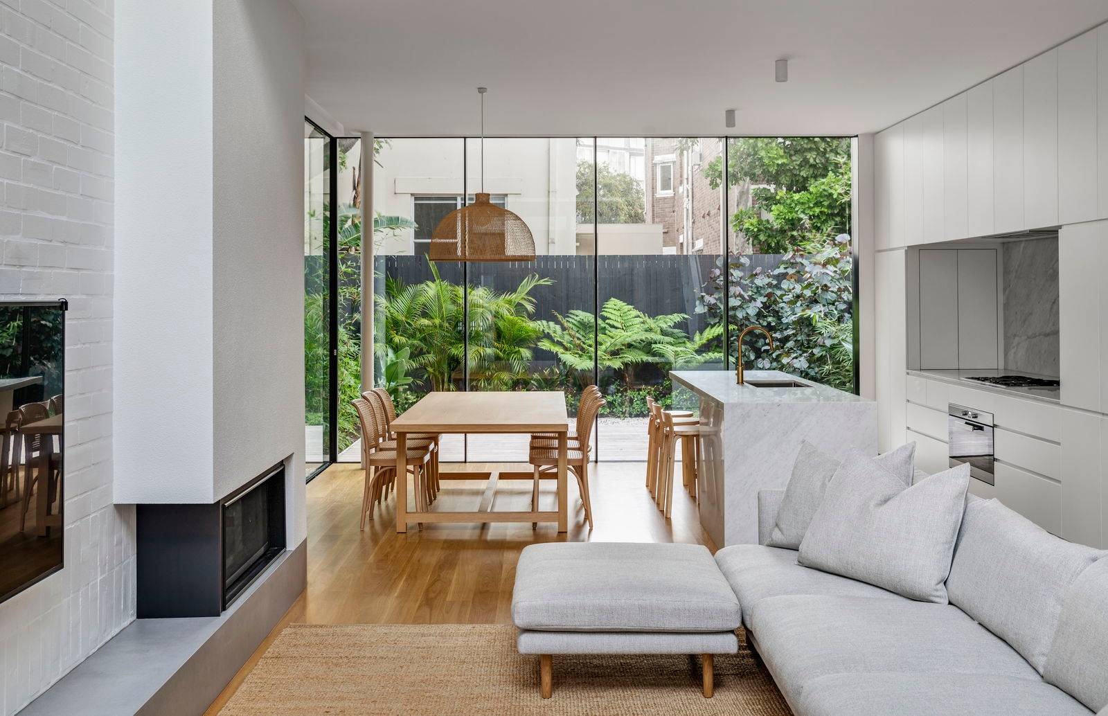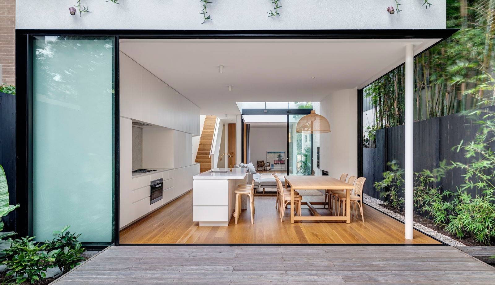 - From the street, a striking white façade, accented with sun-kissed timber and framed by lush greenery, hints at the sanctuary within.