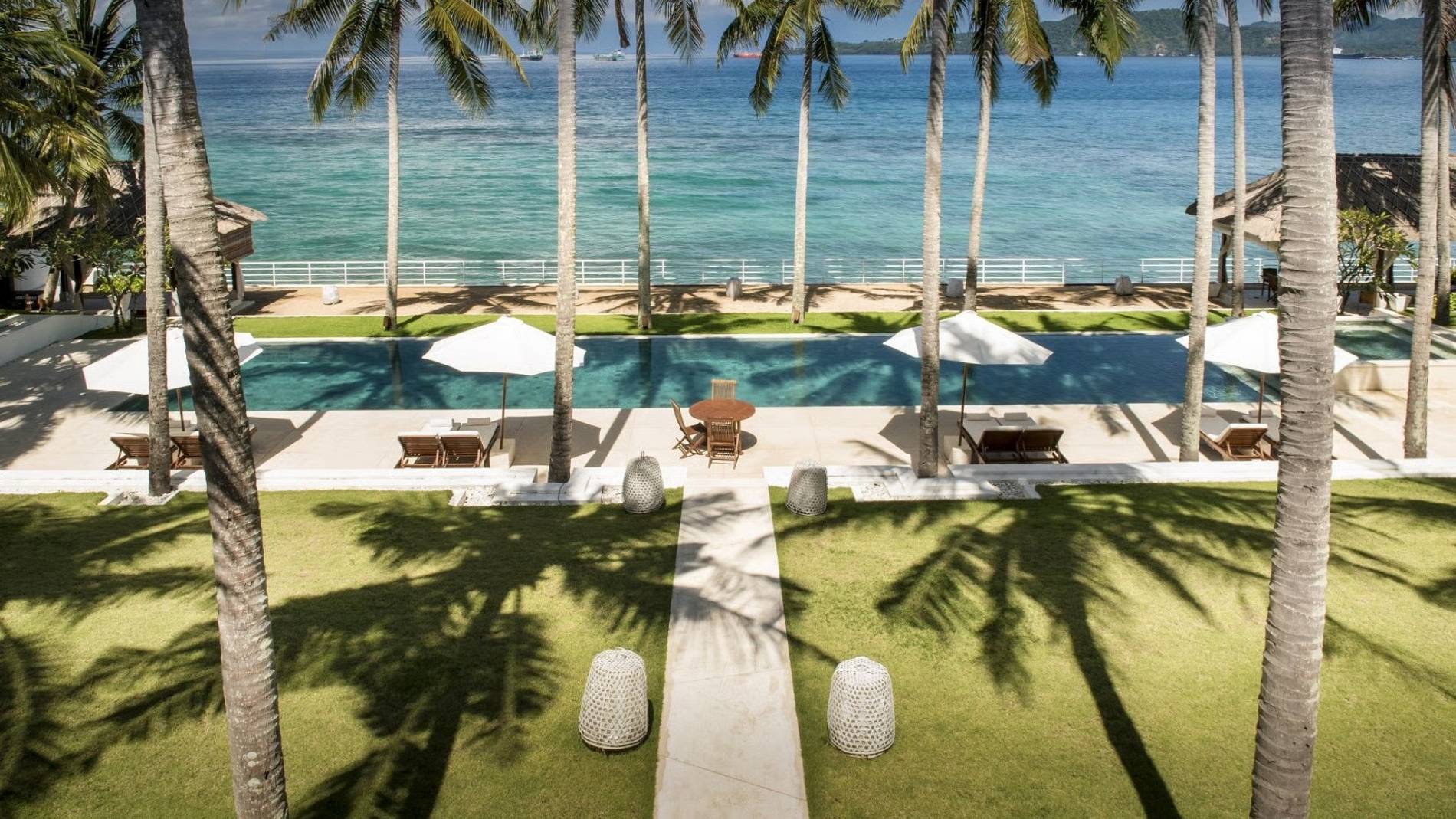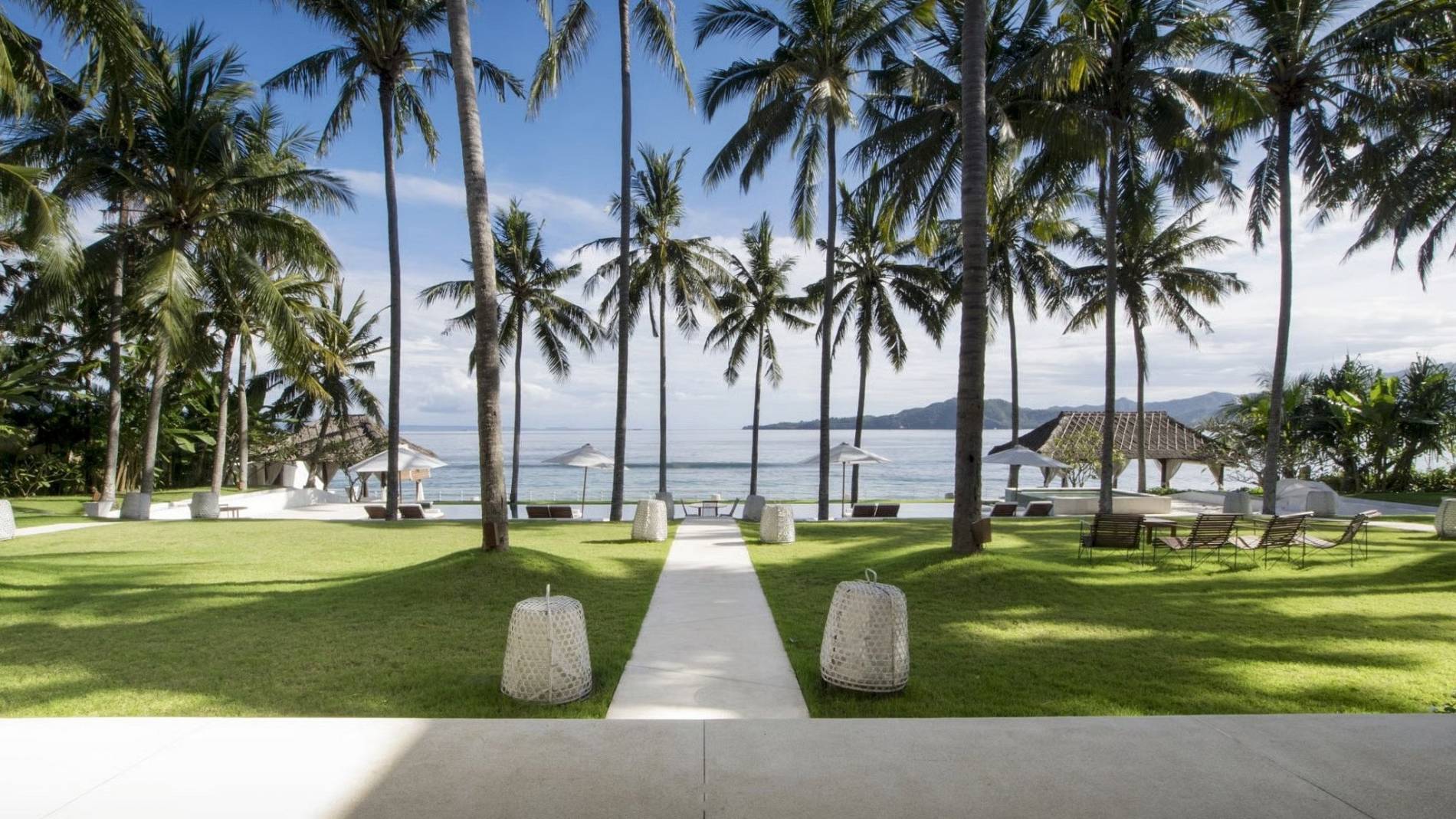 - The villa’s 4,000-square-meter garden unfolds toward the sea,