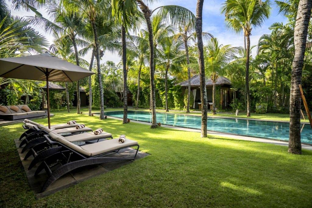 - At the side of the pool is a private air-conditioned spa room with two massage beds, while comfortable outdoor seating and sun loungers are thoughtfully arranged poolside and throughout the gardens.
