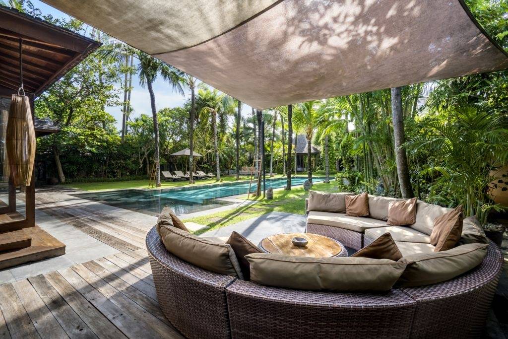 - Opposite the pool is the villa’s air-conditioned spa therapy room with two massage beds for in-house treatments, which can be easily arranged by the villa manager. On a shade-dappled deck to one side of the living pavilion is a large circular seating area – perfect for evening cocktails or a relaxing afternoon read. On the other side is a beautifully designed open-sided dining area complete with massive twenty-seat table and barbecue.