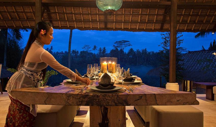 Relax by the villa’s inviting pool or unwind in the open-air living and dining areas, which provide the perfect setting for lazy afternoons or evening gatherings under the soft glow of Balinese lanterns. The villa’s unique design highlights a luxurious yet traditional aesthetic, capturing the essence of Ubud’s artistic heritage. At Villa 3115, every detail has been curated to create a peaceful escape where guests can reconnect with nature while enjoying unparalleled comfort and style in Ubud. Whether you’re lounging by the pool, enjoying a sunset meal, or taking in the lush jungle views, this villa is a true haven in the heart of Bali’s cultural landscape.