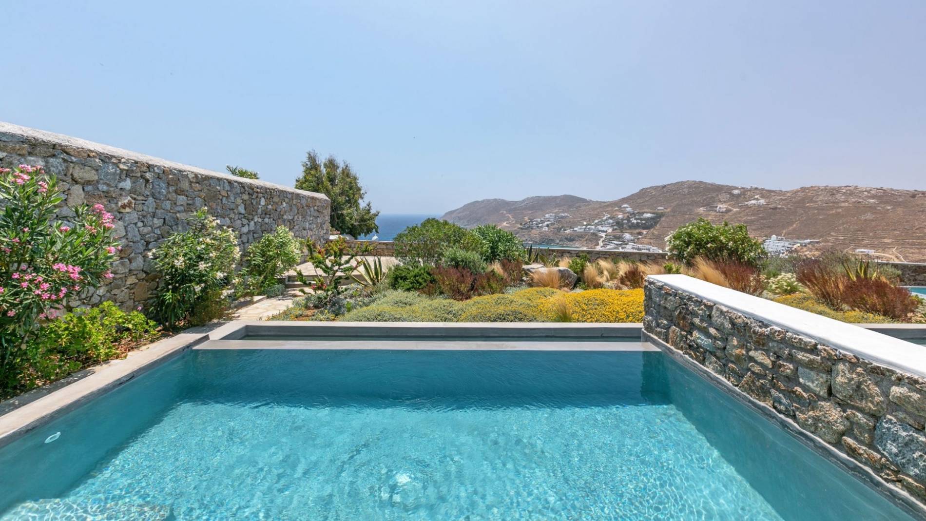 Commanding an elevated position with sweeping views over Kalo Livadi, the estate enjoys privileged proximity to several of the island’s most sought-after beaches, placing guests moments away from crystalline waters and the vibrant energy of Mykonos’ celebrated coastline.