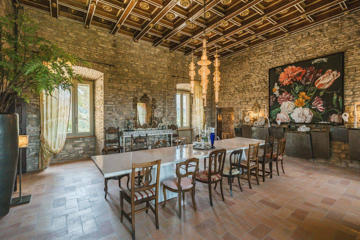 - Indoor dining table for 18 guests on the first floor