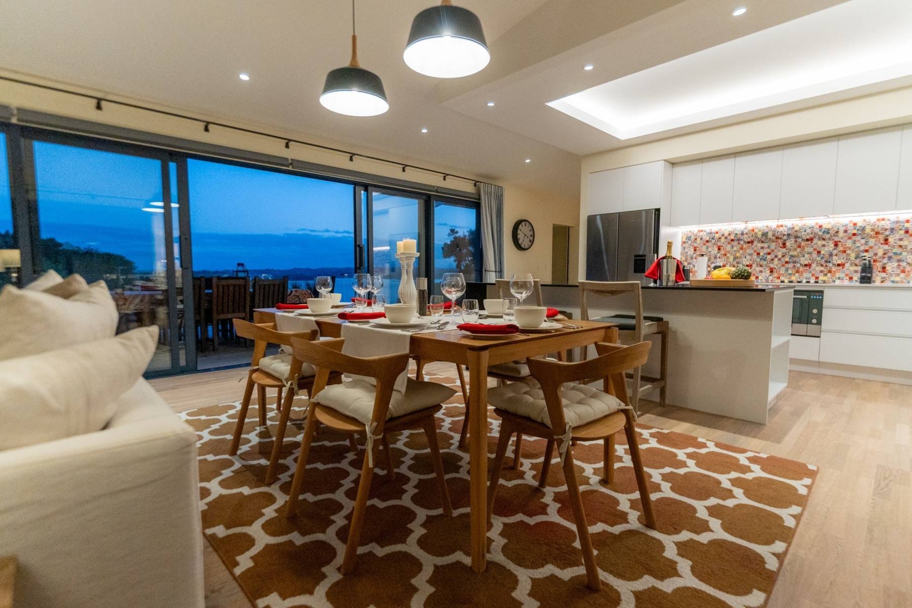 This newly built, five-star, three-bedroom villa is a masterpiece of modern design and comfort. Every detail has been thoughtfully considered to ensure a seamless experience — from its fully accessible layout to its panoramic vistas overlooking Russell and Kororāreka Bay towards Paihia.