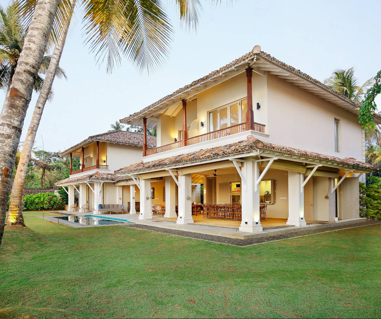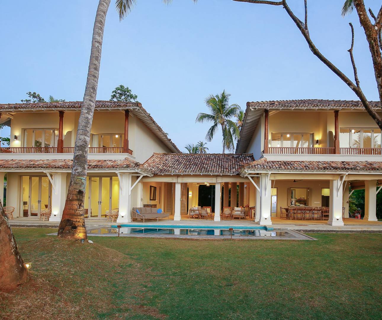 This six bedroom luxury beach villa in Sri Lanka sits on a secluded, palm fringed bay where the garden melts into soft sand & the ocean is always in view. From the moment you arrive you feel the quiet privacy of the setting, with only the sound of the waves, the breeze in the coconut trees and the occasional fishing boat passing by. It is a place created for families and friends to slow down together, to share long meals & easy days by the sea.