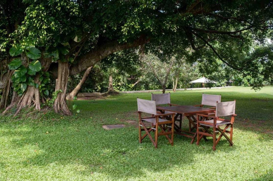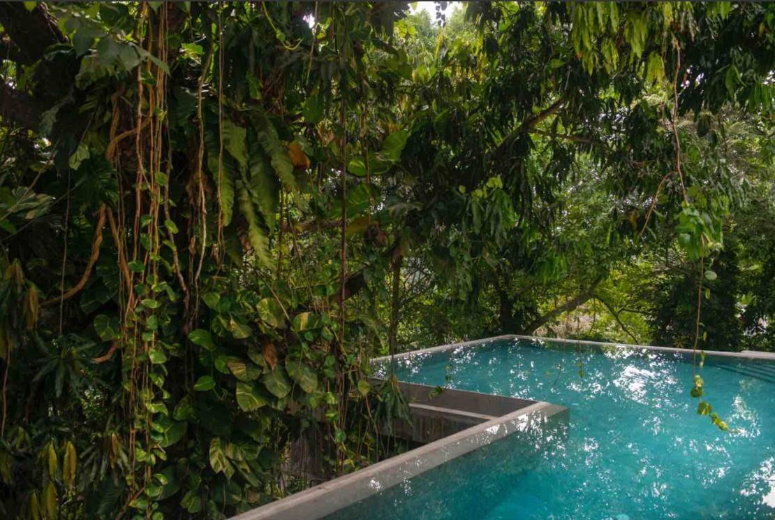 Extensive lawns bordered by indigenous plantings lead to a secluded pool area, hidden from the house. The 16-metre length pool is set against a dominating mango tree and the verdant jungle surrounds