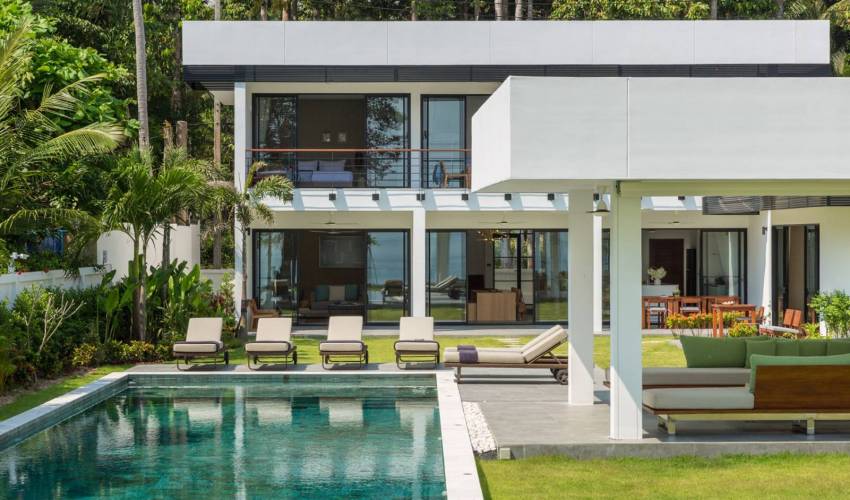 Villa 4695 in Koh Samui is a luxury beachfront villa situated on a stunning coast with modern architecture and large rooms, wide-open spaces and breathtaking views.