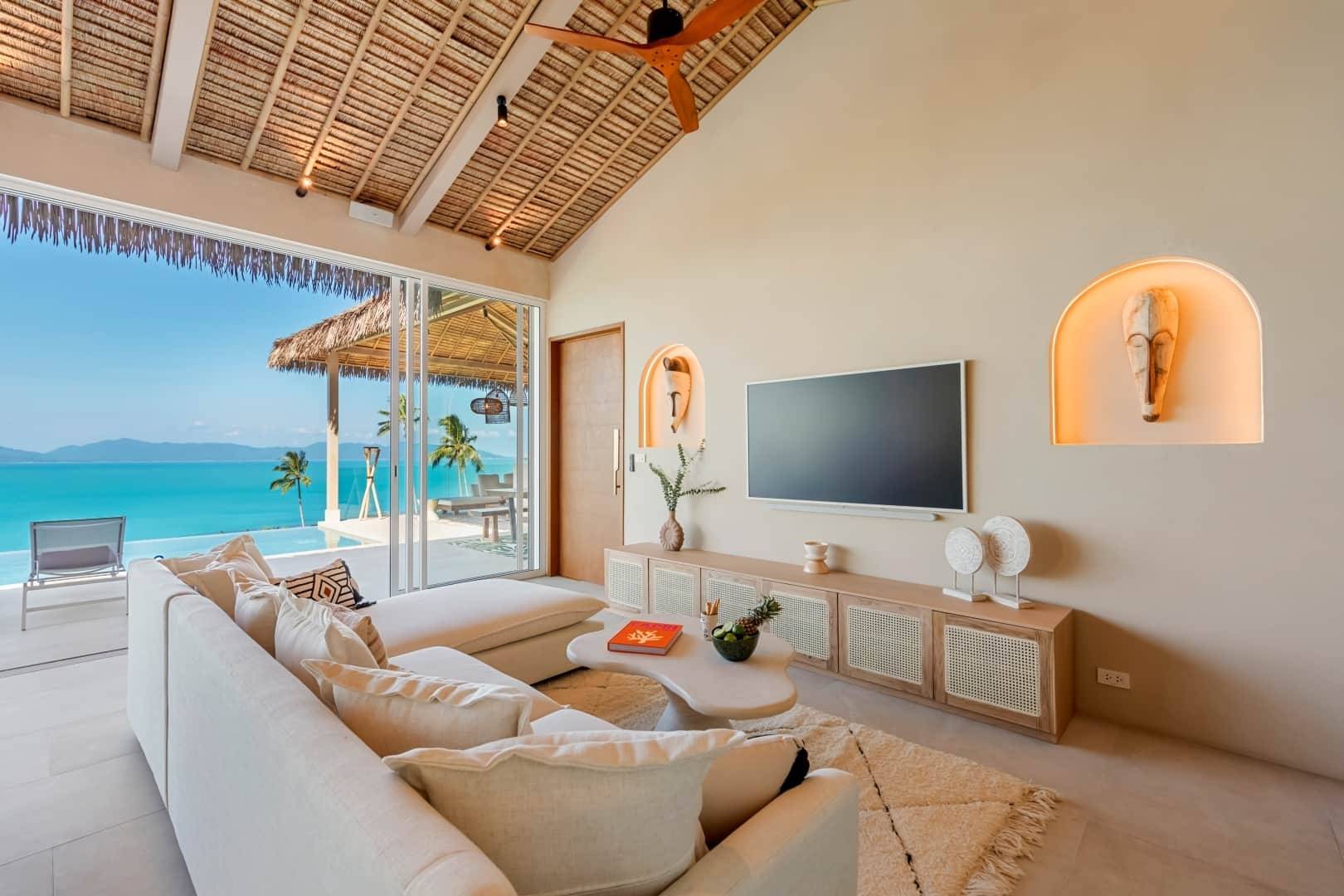 Set amidst lush tropical greenery, our villas are designed to blend indoor elegance with expansive outdoor living. Whether you’re lounging beneath the poolside pavilion, basking on the sun-drenched terrace, or refreshing yourself in the infinity-edge pool, the island’s warm climate invites you to live seamlessly between indoors and out.