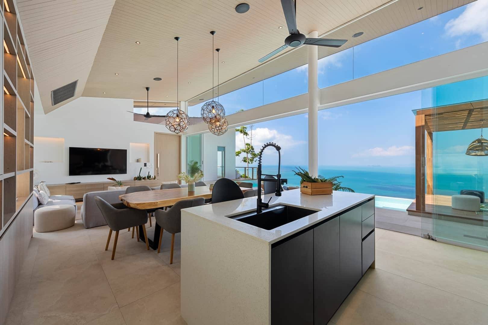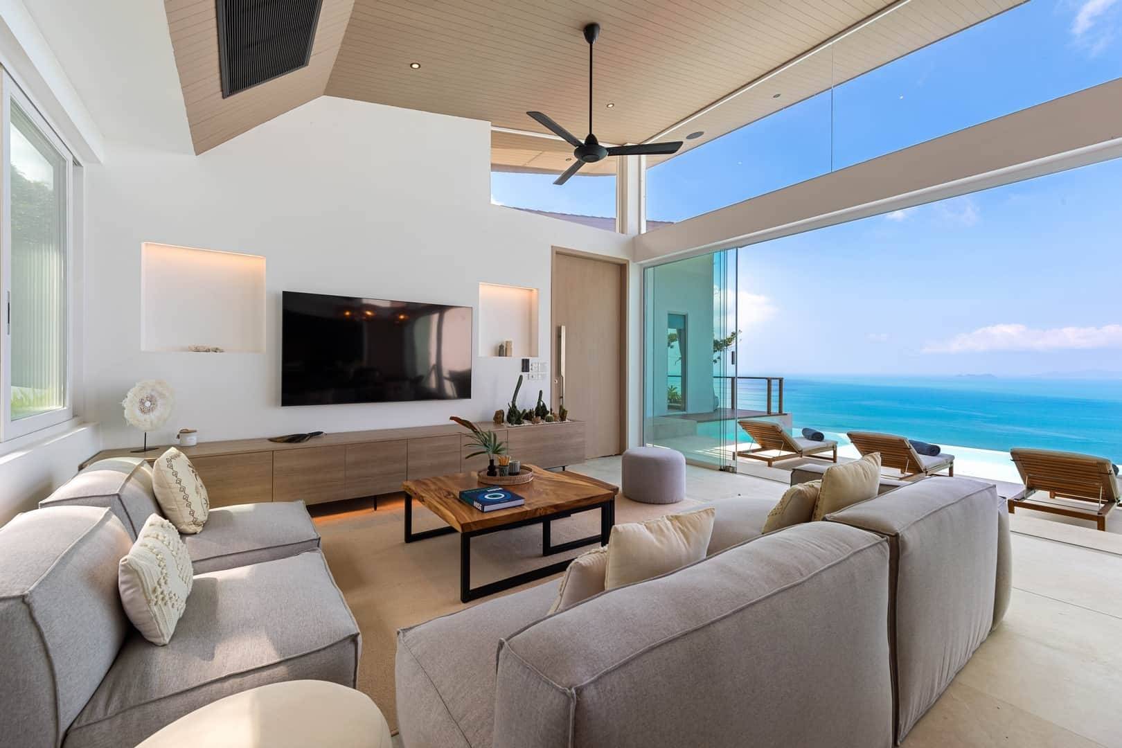 Perched above the coastline with uninterrupted views of Koh Phangan, this villa is a masterpiece of modern island living. From the moment you arrive, you are greeted with a seamless blend of refined interiors and the boundless beauty of the sea.