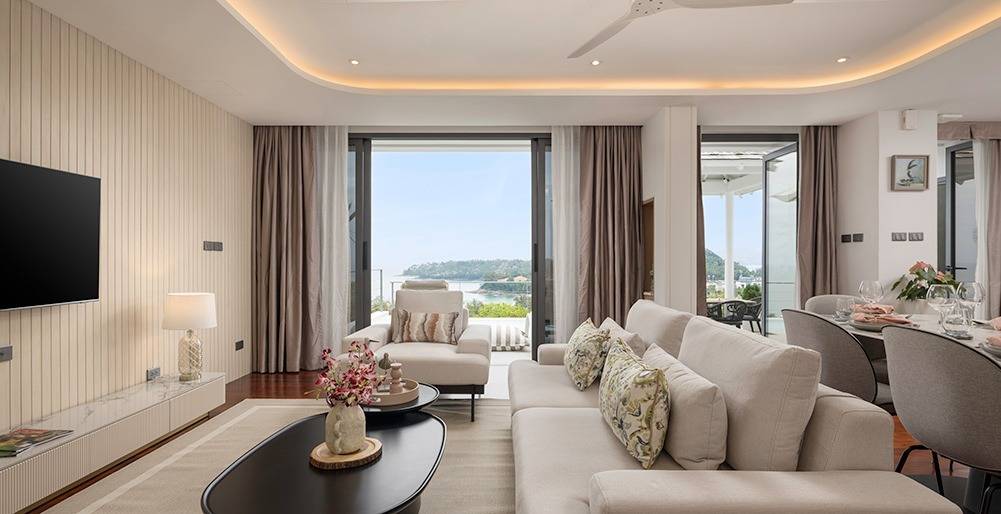 - Master bedroom: King-sized, ensuite bathroomwith deep-soaking tub overlooking Surin Beach, small balcony to soak up the sea views and feel the warm breeze