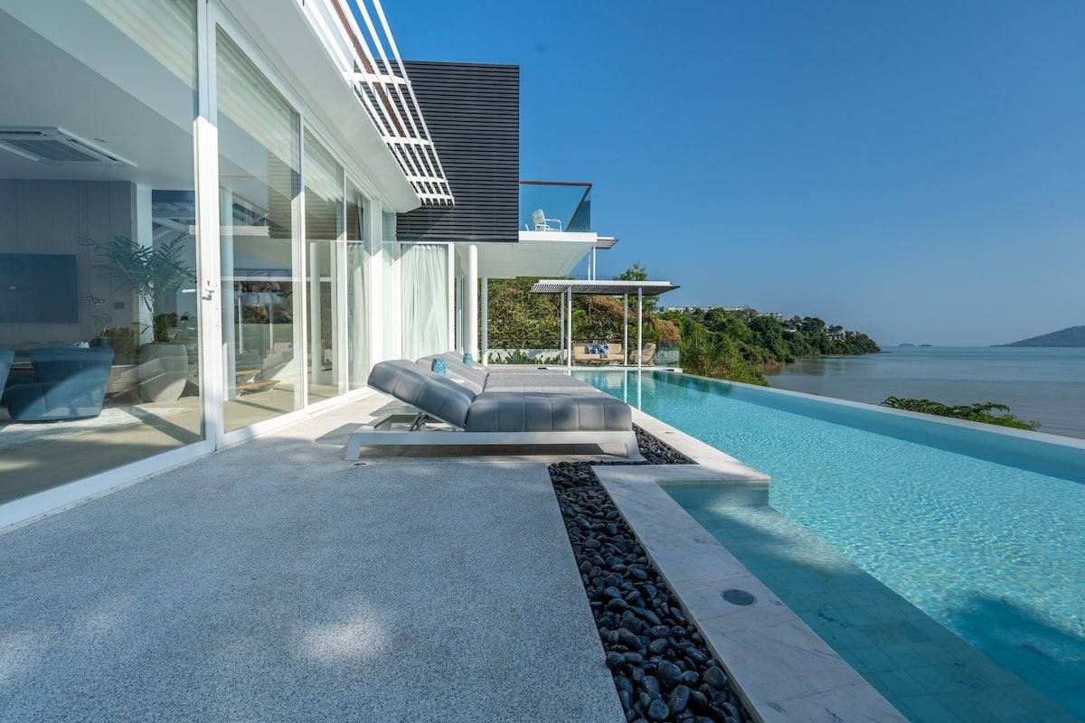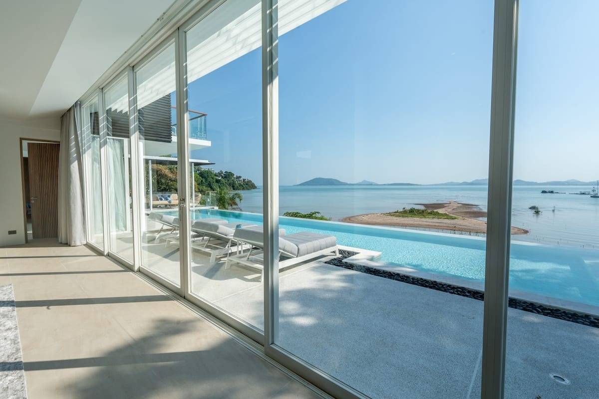 Set across 1,500 sqm of landscaped grounds and 800 sqm of elegant living space, the residence features seven expansive ensuite bedrooms, comfortably accommodating up to 14 guests. Floor-to-ceiling windows frame sweeping sea views from the living, dining, and kitchen areas, seamlessly blending indoor comfort with the beauty of the Andaman coastline.
