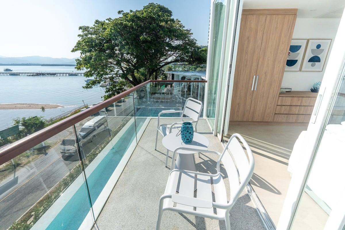 - Bedroom 01 (Upper Level): King bed, full sea view, large balcony, ensuite with shower