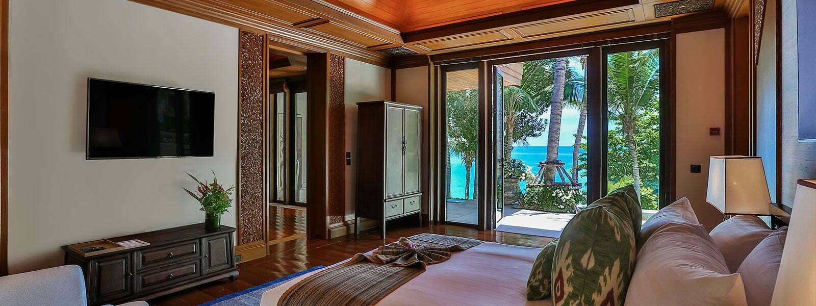 Framed by lush tropical gardens and expansive western-facing panoramas, the villa overlooks a secluded, restricted-access cove found at the foot of the property. Here, the Andaman Sea becomes your personal playground—perfect for morning swims, sunset dips, or moments of quiet solitude beside the water.