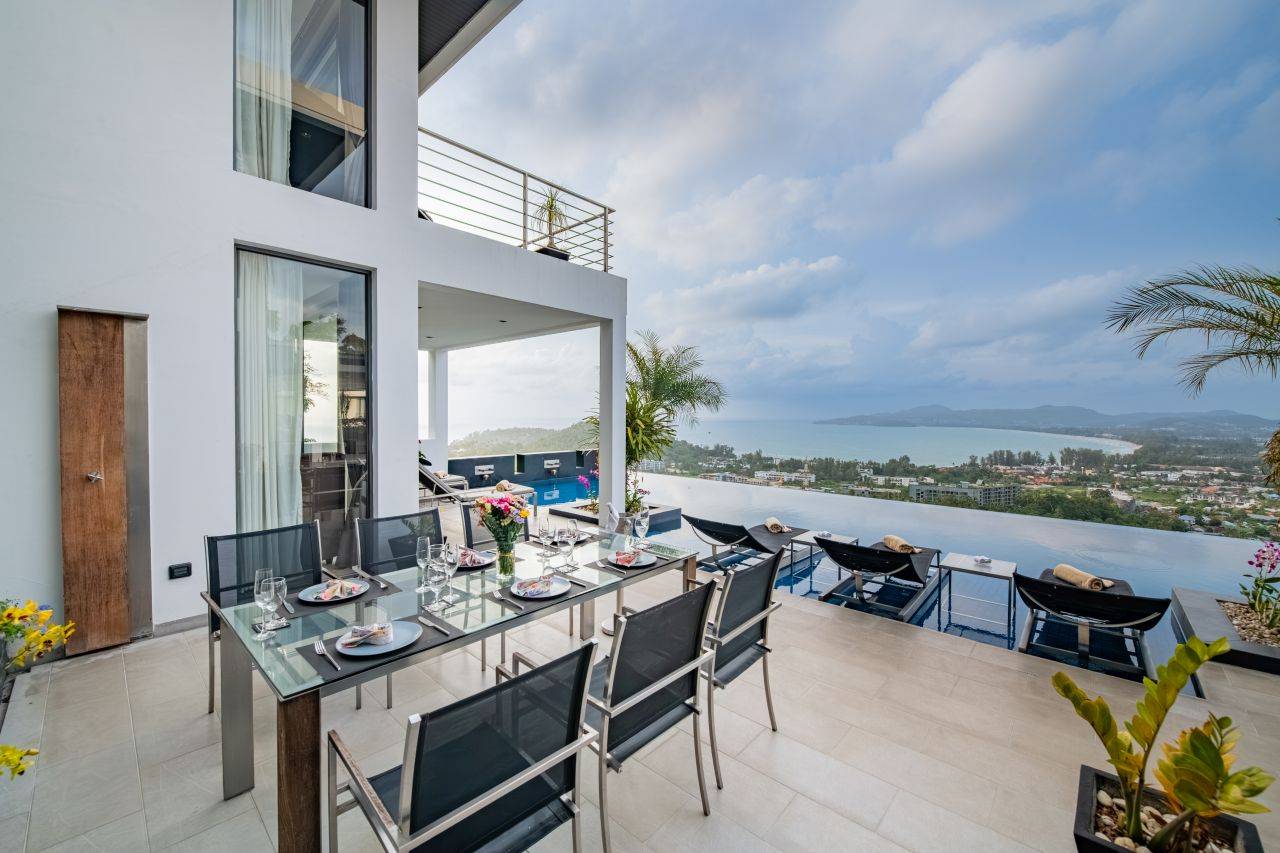 Villa Zamani in Phuket, a majestic villa is situated privately in the hills above Surin Beach area on Phuket's West Coast. This four level, eight bedroom open plan villa has elegant, modern style architecture and sweeping sea and valley views. Come and experience a spectacular Villa vacation getaway offering seclusion, privacy and security with your own infinity pool, well-equipped fitness room and luxury home theatre system.